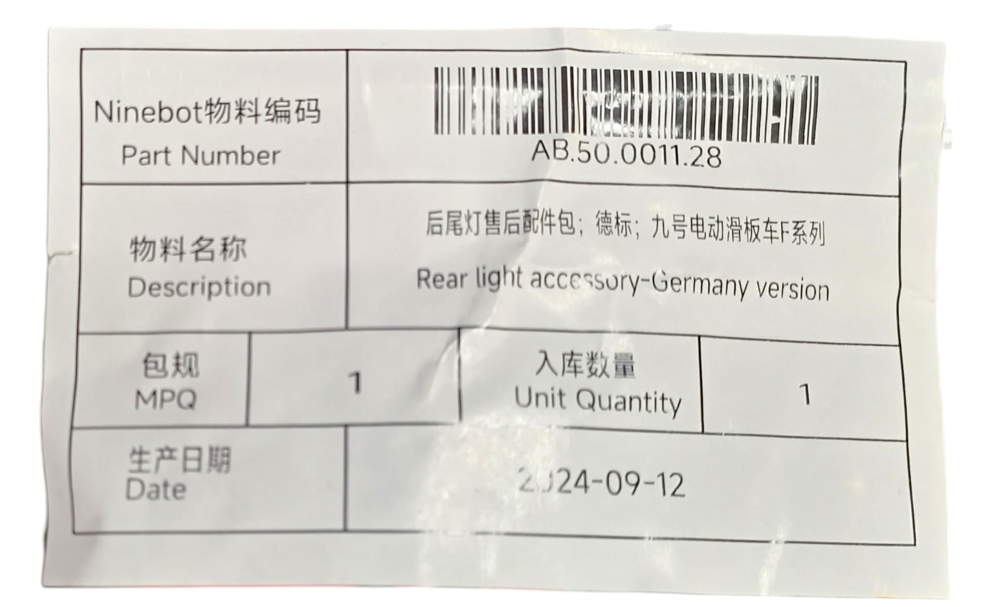 Lampka tylna Segway Ninebot D18 Oryginał do hulajnogi elektrycznej oryginał